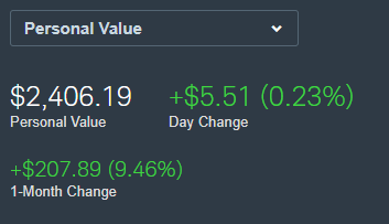 Ended up having to revamp my Robinhood account so that I can have the minimum at $1544 with dividend re-investment automated. Going to split it 54% stocks, 44% bonds (ETF: BND), 2% Cash. This hopefully gets me interest plus the DRIP, hopefully to increase at a desired rate during the six months before going Zambia. The six months will be for making my passport valid before traveling internationally.